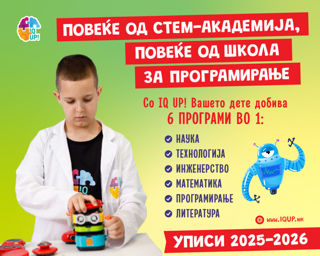 Во време кога дигиталните вештини стануваат основна писменост, вистинската разлика ја прави средината што успева да го задржи интересот на детето и без притисок да го води напред. IQ UP! е пример за таква средина, каде што секое знаење се гради внимателно, а секоја идеја добива простор да стане нешто повеќе.